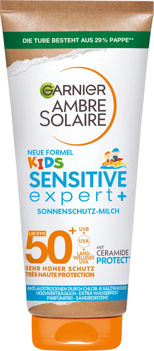 Garnier Ambre Solaire KIDS Sensitive Advanced Hypoallergenic Milk SPF 50+ 175ml Pack 6 Barcode – 3600542520768 Our Ambre Solaire Kids Sensitive Advanced Sun Lotion SPF50+ immediately protects your kids from both short and long-term sun-induced damage. Our innovative Netlock Technology(TM) and maximum 5 Star UVA protection has been especially developed for kids’ sensitive and sun intolerant skin and is hypoallergenic. The kind-to-skin formula can be used on body and face. This travel size tube makes it perfect for being on the go! Our formula conforms 100 percent to European recommendations for protection against the harmful effects of UVA and UVB rays. Garnier Ambre Solaire Kids Sensitive Advanced Sun Lotion SPF50+ immediately protects your kids from both short and long-term sun-induced damage. Our innovative Netlock Technology(TM) provides protection that stays in place on skin, in a moisturising formula that is very water resistant, does not stick to sand and helps prevent dryness due to salt and chlorine. With maximum 5 star UVA protection, the fragrance free lotion is especially developed for kids sensitive and sun intolerant skin and is hypoallergenic, to minimise sun allergy risk. Thanks to it’s bare skin shield technology and kind-to-skin formula, it blends within seconds on skin and can be used on body and face. The photostable formula has been tested under paediatric control and conforms 100 percent to European recommendations for protection against the harmful effects of UVA and UVB rays. Always keep babies and young children our of direct sunlight and protect your kids with a hat, t-shirt, and sunglasses as well as sun cream. Garnier’s suncare research is recognised by the British Skin Foundation.